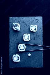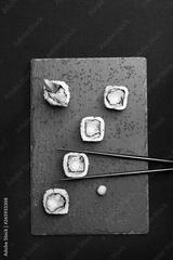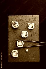 Sushi, with shrimp in tempura and avokado. Set on a black background