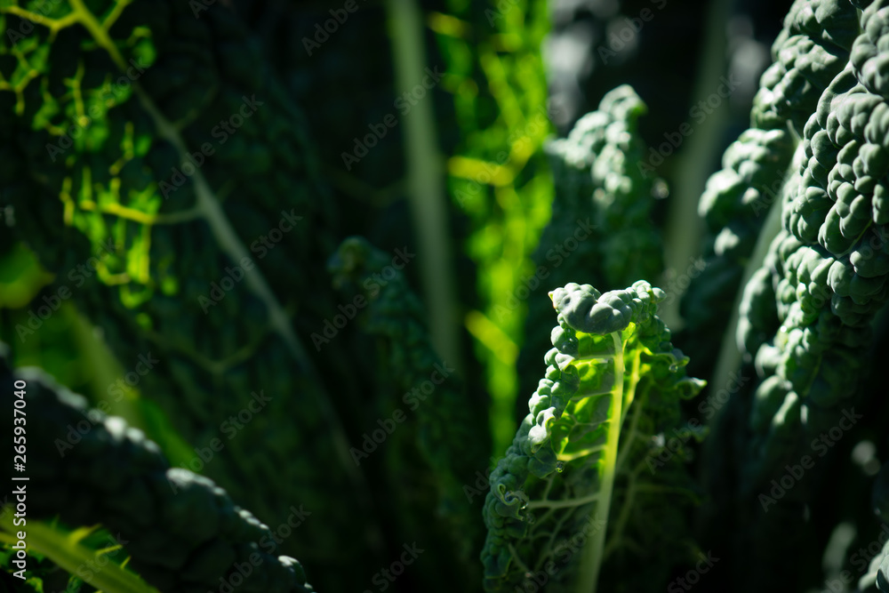 Close Up Marco of Kale Growing in the Garden - Selective Focus