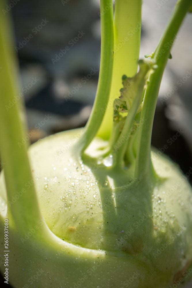 Close Up Macro of Kohlrabi Growing in the Garden - Selective Focus