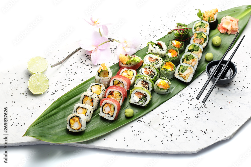 Sushi. Fresh, appetizing set of sushi. Traditional Japanese cuisine