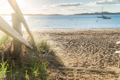 Pathway to Tapeka Point Beach Bathed in Autumn Afternoon Sunlight - Horizontal, Bay of Islands, New Zealand