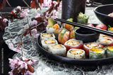 Sushi. Fresh, appetizing set of sushi. Traditional Japanese cuisine