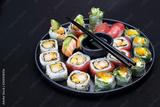Sushi. Fresh, appetizing set of sushi. Traditional Japanese cuisine