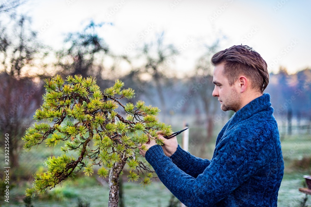Outdoor fashion portrait of beautiful woman with dark hair, wearing long vintage styled green skirt and pullover, posing on the city street