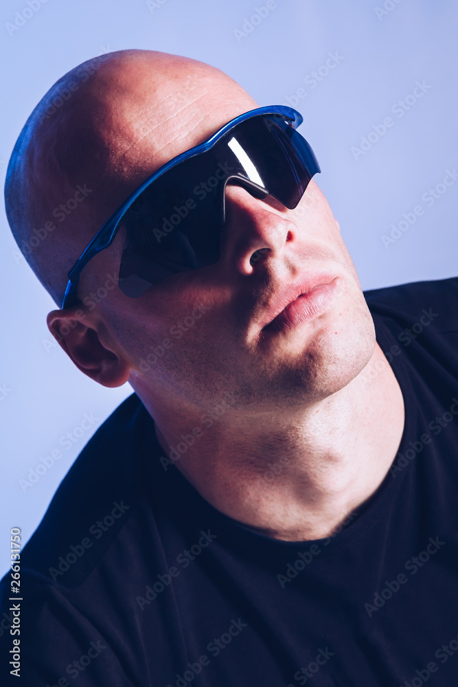 Studio shot of strong athletic man in black tshirt Fitness male bodybuilder posing