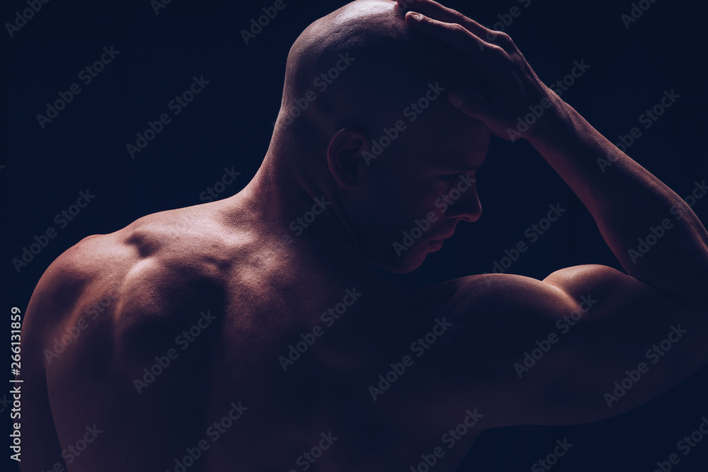 Brutal strong athletic Bodybuilder posing. Bodybuilding and healty life concept