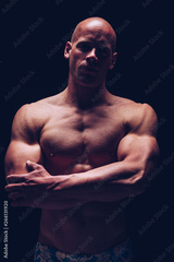 Brutal strong athletic Bodybuilder posing. Bodybuilding and healty life concept