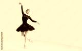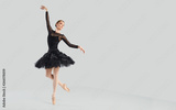 Woman ballet dancer over gray background.
