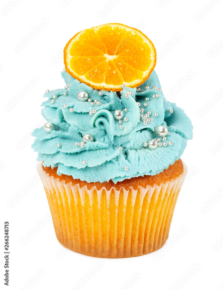 Cupcake with orange isolated on white