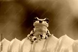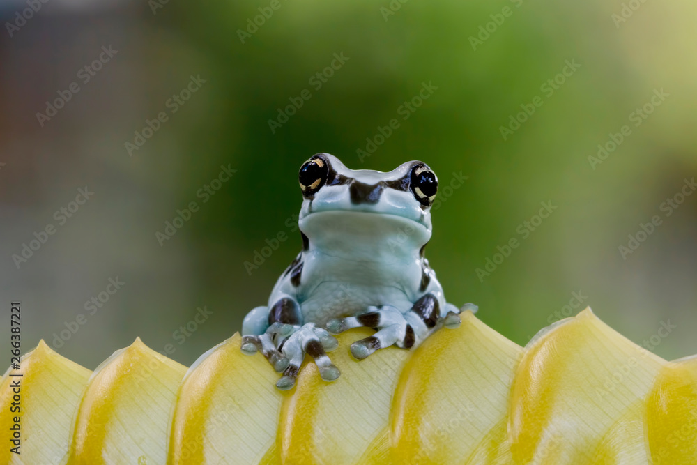 Cute amazone mil frog on bud, Panda Bear Tree Frog