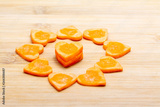 Sliced carrot on cutting board preparated for cooking.