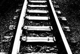A railway track close-up during the sunset