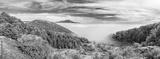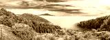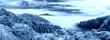 Amazing panoramic view from Osorno Volcano to an awe sea of clouds scenery on an amazing forest with Patagonia mountain range on the far distance. An awe wilderness scenery on a remote location