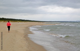 woman does jogging on the beach