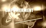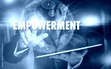 A hand selecting a Empowerment business concept on a futuristic computer display.