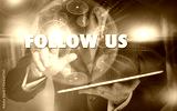 A hand selecting a Follow Us business concept on a futuristic computer display.
