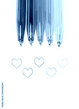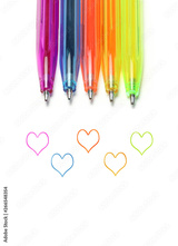 Bright colorful pens and abstract hearts