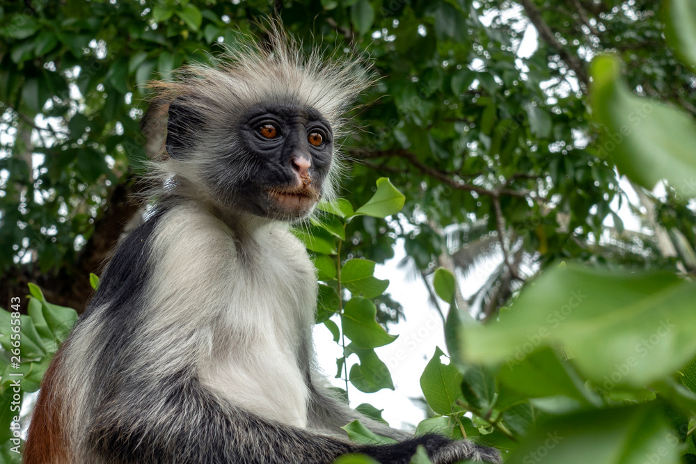 Red Colobus monkey in a natural environment, Portrait,Zanzibar.