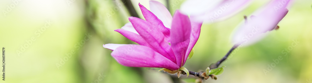 Beautiful background with blooming purple magnolia. Banner for the site.