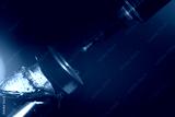 A glass medical bottle with a vaccine and a disposable syringe in color light. A conceptual photo about the danger of viral diseases.
