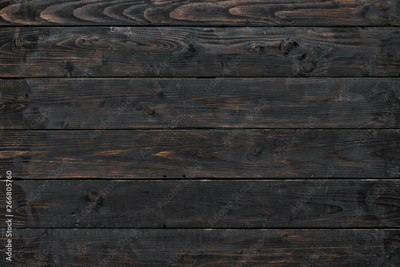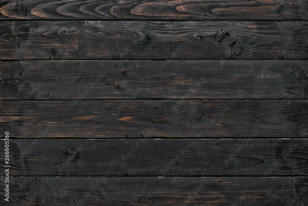 Horizontally arranged burnt boards. Black and brown wood texture.