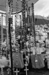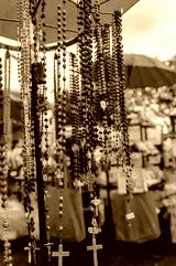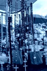 Rosary Beads hanging outside a Roman Catholic souvenir shop, Knock, Ireland