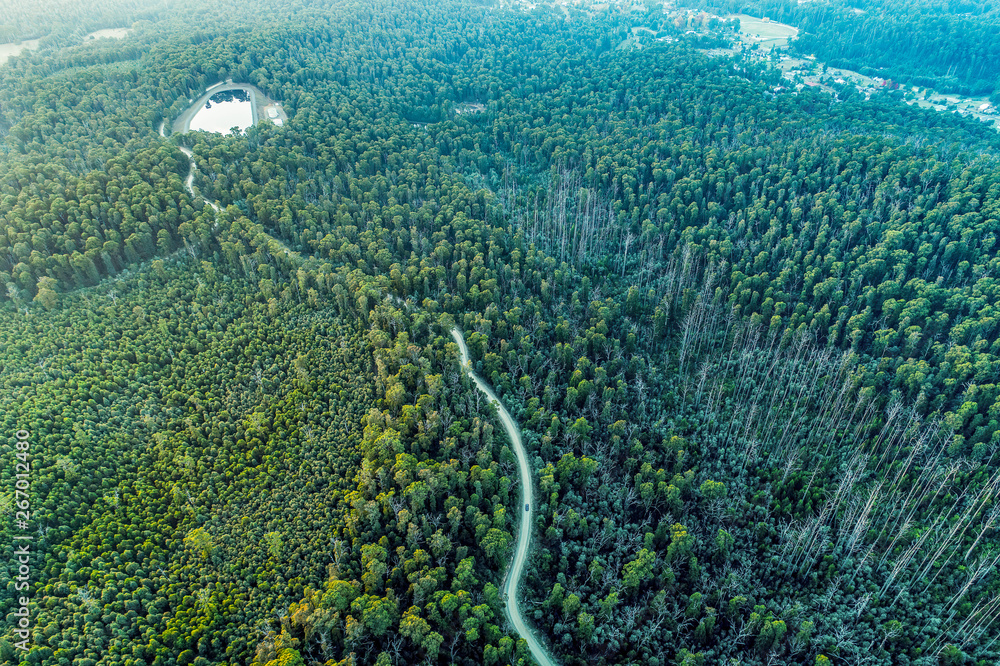 Road winding through native eucalyptus forest in Yarra Ranges, Victoria, Australia