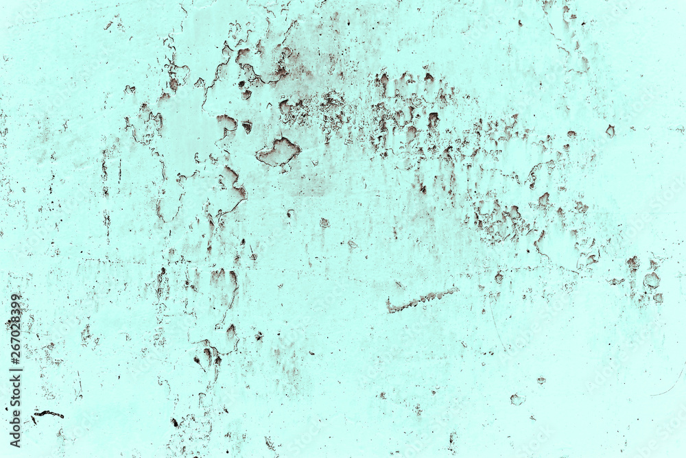 Vintage cyan background. Rough painted wall of hazel color. Imperfect plane of brown colored. Uneven old decorative toned backdrop of blue tint. Texture of azure hue. Ornamental stony surface.