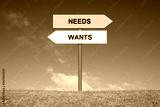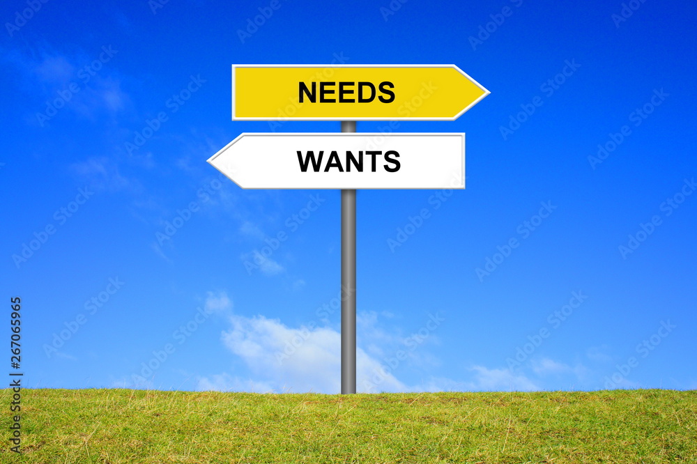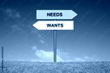 Schild Wegweiser zeigt Wants oder Needs