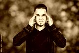 man taking antibiotic, antidepressant, pill medication to relieve pain at home. Young guy sick, ill suffering from headache, stress or flu, emergency treatment concept on green bokeh background