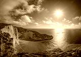 Sun shining over cliffs in Shipwreck Cove