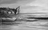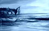 Morning on sea, wave, illustration, Oil painting seascape.
