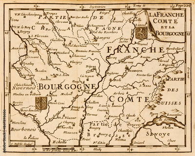 Old map of Franche Comté de Bourgogne. France. Vintage style