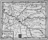 Old map of the Paris region. Vintage. Ile de France