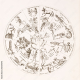 Old map of the Egyptian zodiac. Constellation Planisphere.