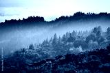 Mystical landscape with forested mountains and fog. San Francisco, California USA