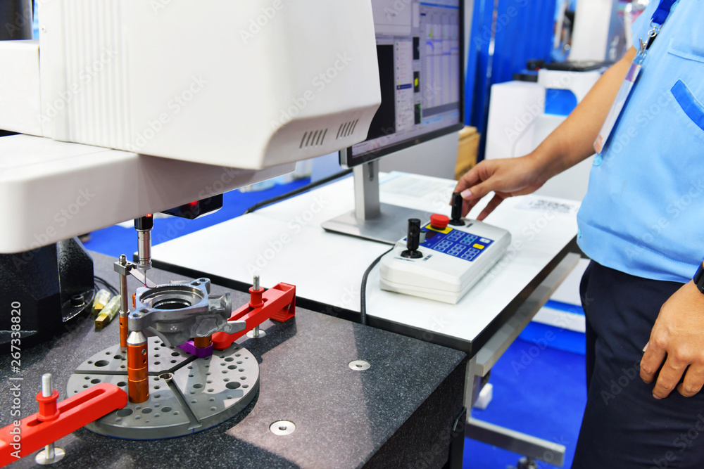 Close up automatic coordinate measurement machine (CMM) for inspection high precision part during working