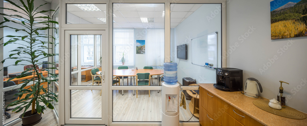 View of the meeting room through the glass wall.