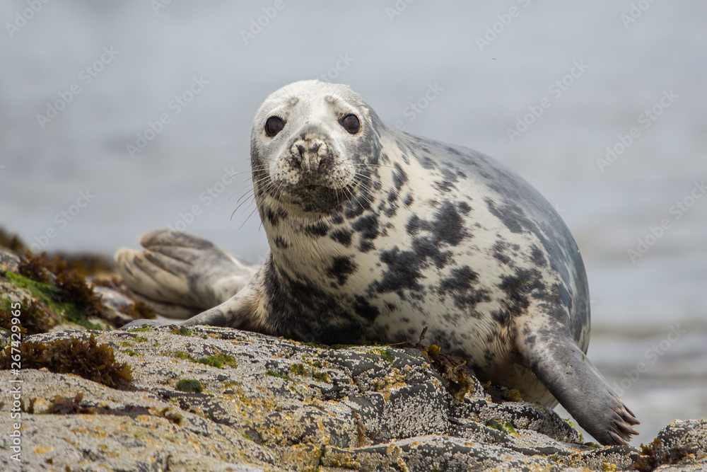 Grey seal looking at camera (Halichoerus grypus), Farne Islands, Scotland
