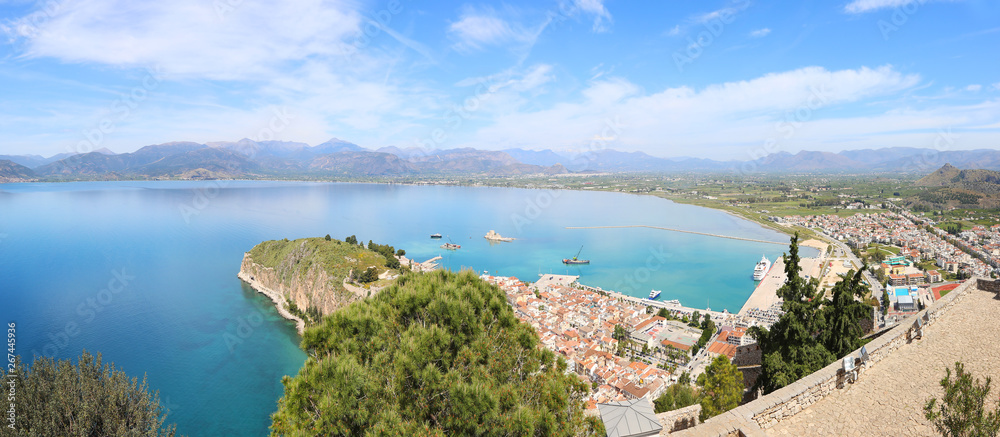 panoramic scenery from above of Nafplio city Argolis Greece - drone view