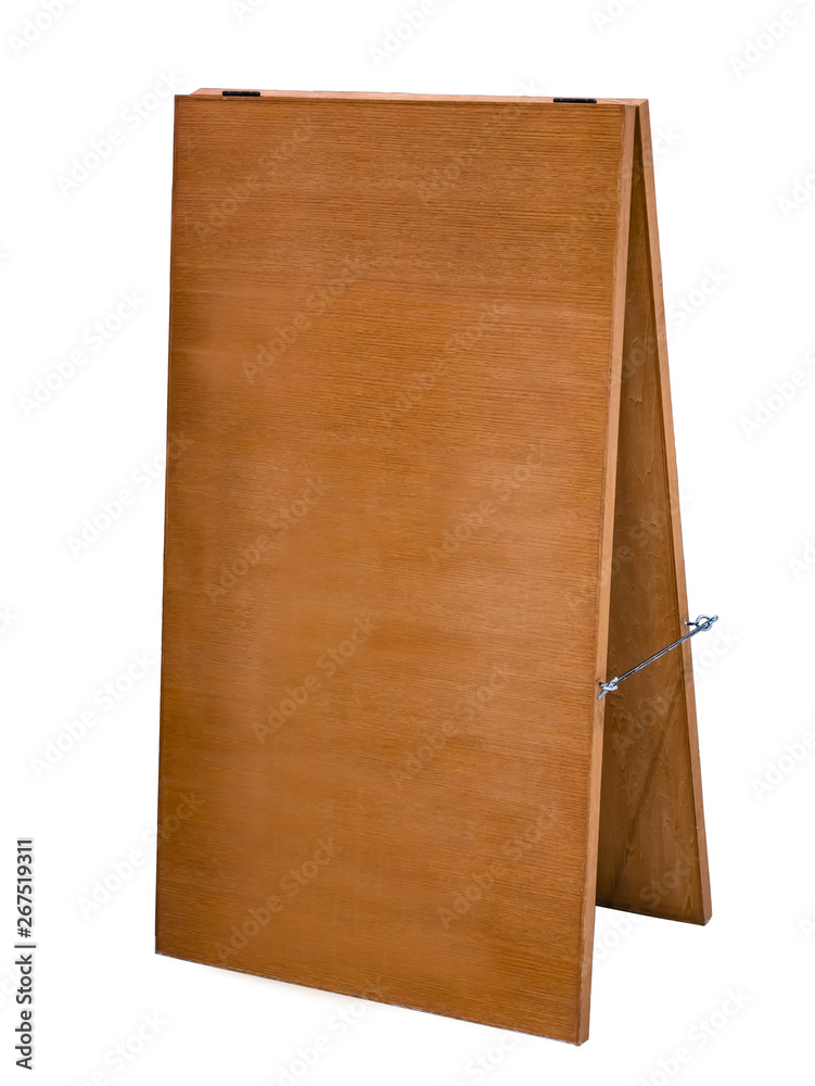 Wooden signboard Blank mock up sign stand Shop decoration isolated