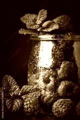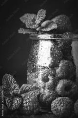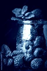 Raspberry. Raspberries and blueberries in a Cup on a dark background. Summer and healthy food concept. Background with copy space. Selective focus.