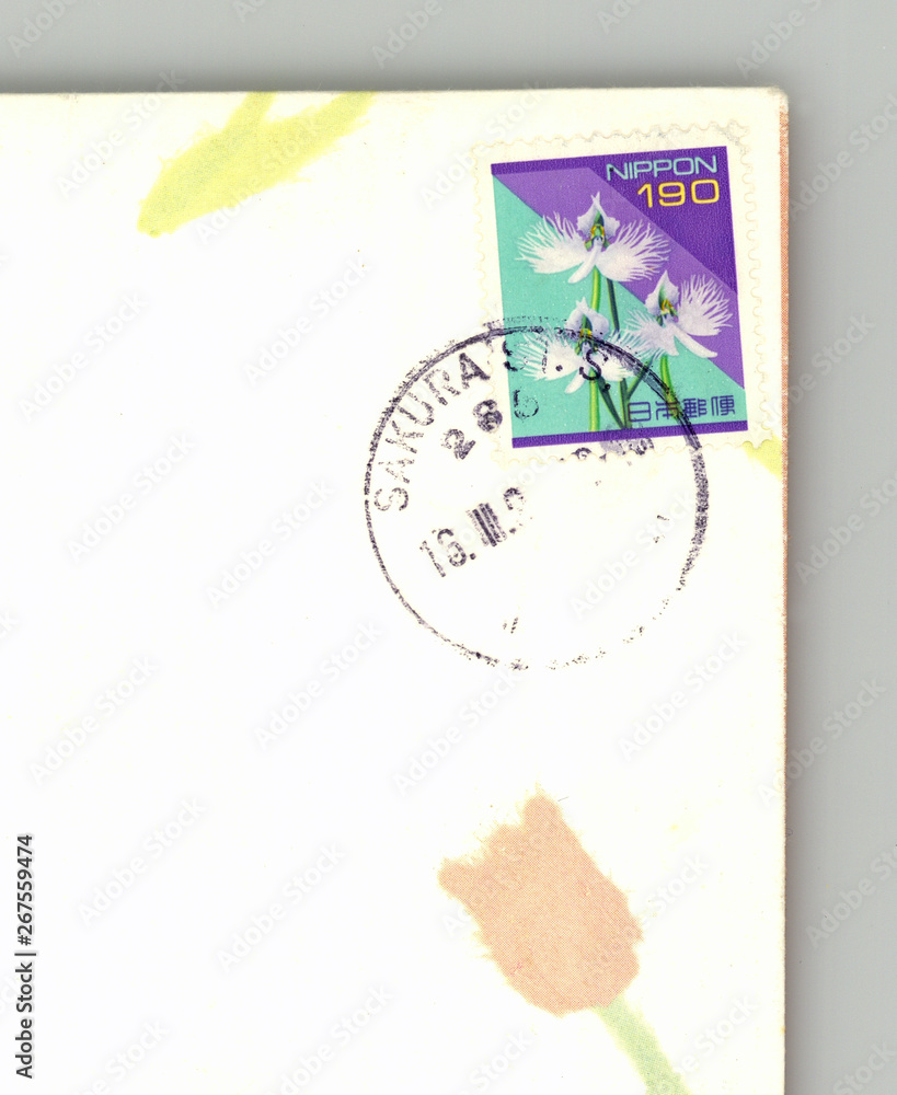 Briefmarke stamp 190 Waldhyaznthe fringed Orchid Umschlag envelope Blume flower Japan Nippon 0027