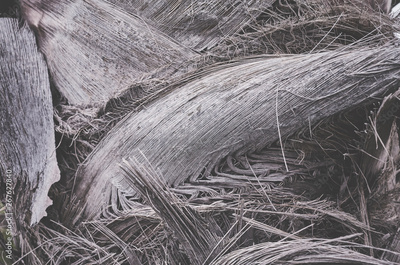 Close up picture of a palm tree trunk, color toned natural background or texture, selective focus.