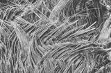Close up picture of a palm tree trunk, color toned natural background or texture, selective focus.