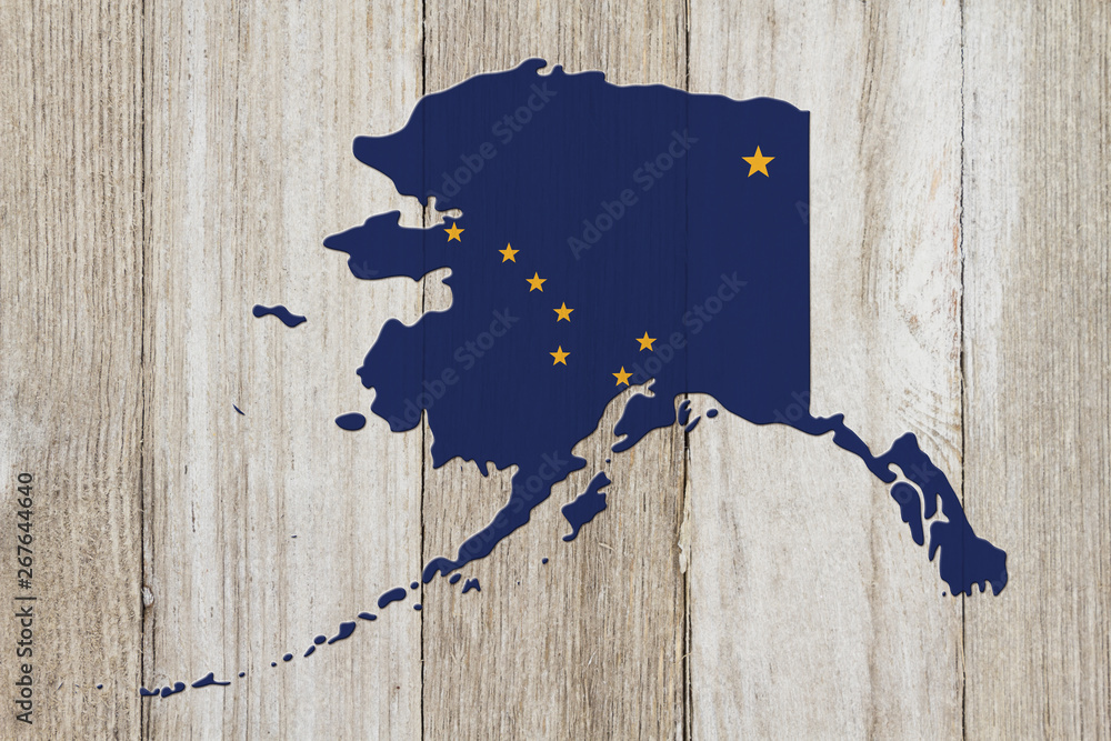 Map of Alaska in the Alaska flag colors