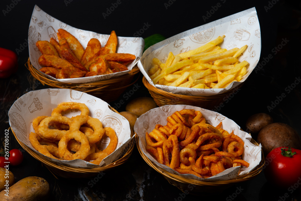 various fries with black background