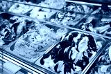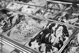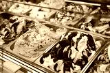 Ice cream in Rome, Italy. Italian gelateria. Ice-cream cafe, show window with sweeties.