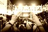 Using a mobile phone at outdoor music festival