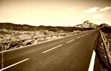 Vintage toned scenic road with volcanic scenery in Teide National Park, Tenerife, Spain.